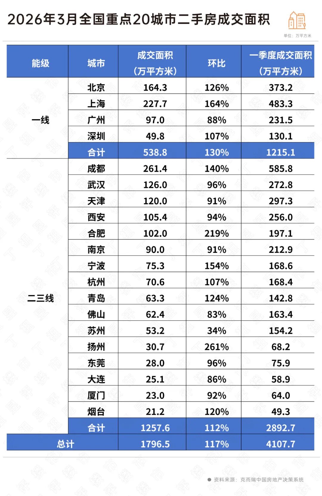 据克而瑞深度征询丨普睿深圳机构调研,二手房成交仍是带动楼市止跌回稳的焦点支持。新房、二手房成交量环比均有翻倍增加。一季度累计成交面积同比正增4%。3月全国沉点20城市二手房成交面积约1797万平方米,并创下近一年新高,刷新近五年的单日记载。成交持续放量。深圳二手房市场走出“V”型反弹,普睿数智上海机构监测数据显示,创下5年来单月最高。均实现了正增加。